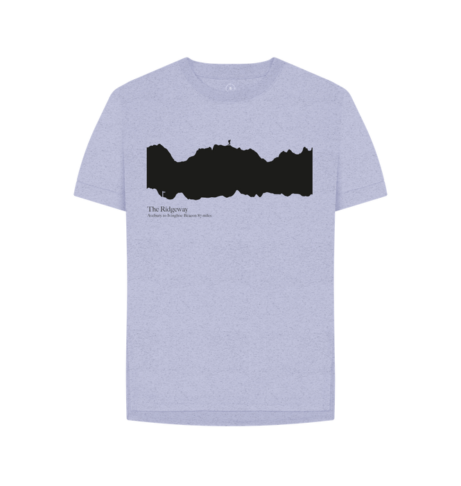 If you look carefully you'll spot that this striking organic cotton, relaxed fit Ridgeway t-shirt design has been created from two trail elevation profiles. Along the bottom it's the stretch from Liddington Hill to Sparsholt Firs with its wonderful views and prehistoric monuments. Along the top, it's the final stretch from Coombe Hill to Ivinghoe Beacon, the end of the trail.
